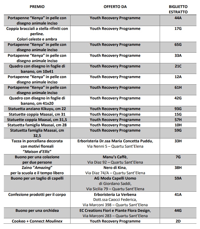 Anche la Youth Recovery Programme metterà in palio oggetti provenienti direttamente dal Kenya!